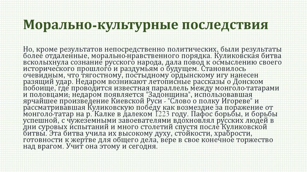 более отдаленные, морально-нравственного порядка. Куликовская битва