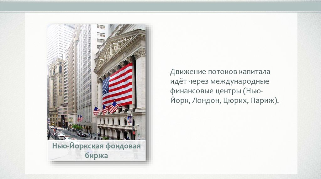 финансовые центры (НьюЙорк, Лондон, Цюрих, Париж).