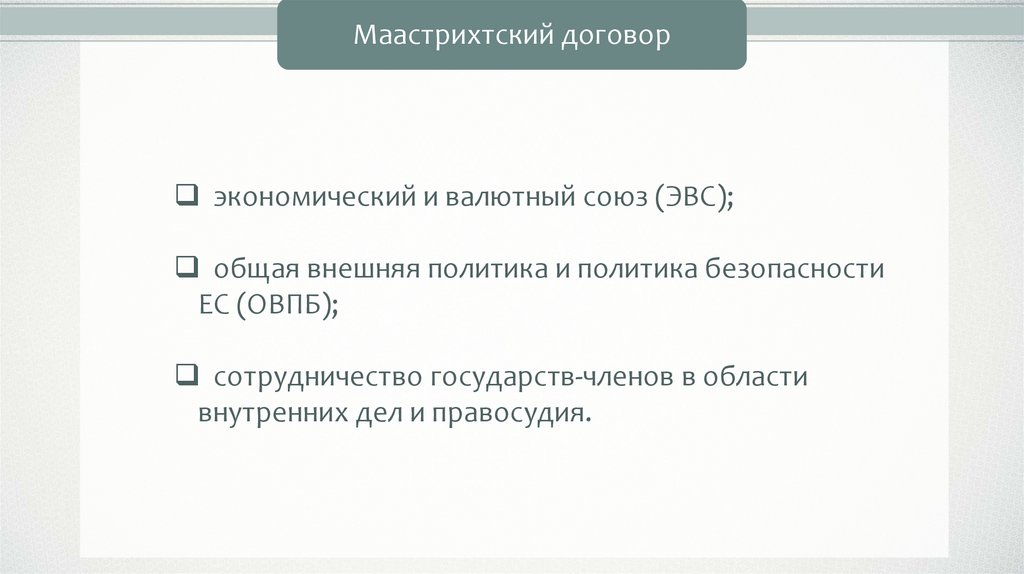 Маастрихтский договорэкономический и валютный союз (ЭВС);