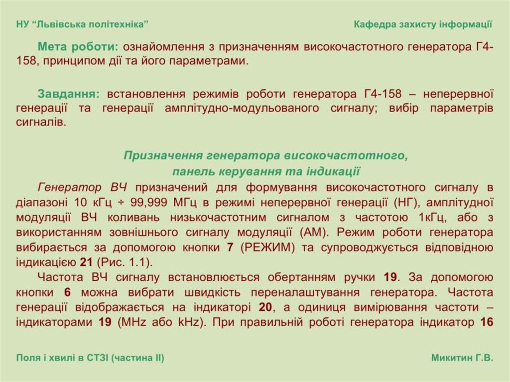 Повірка генераторів сигналів високочастотних (тема 3, заняття 2)