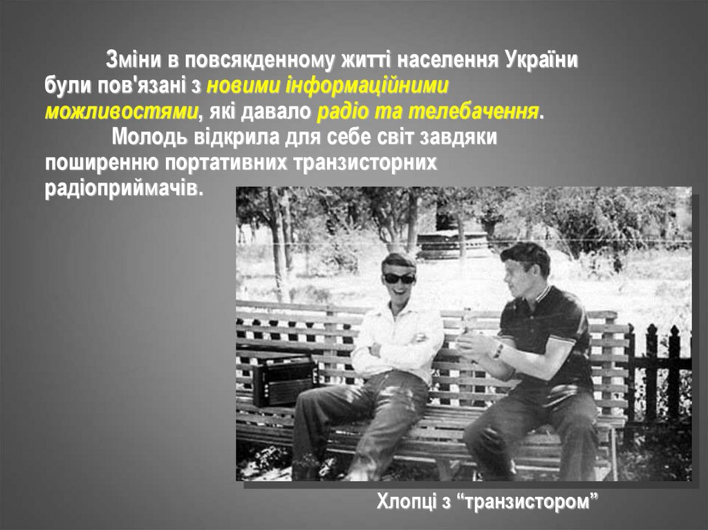 Отже, у той час, як партійно-державна номенклатура 60-х –
