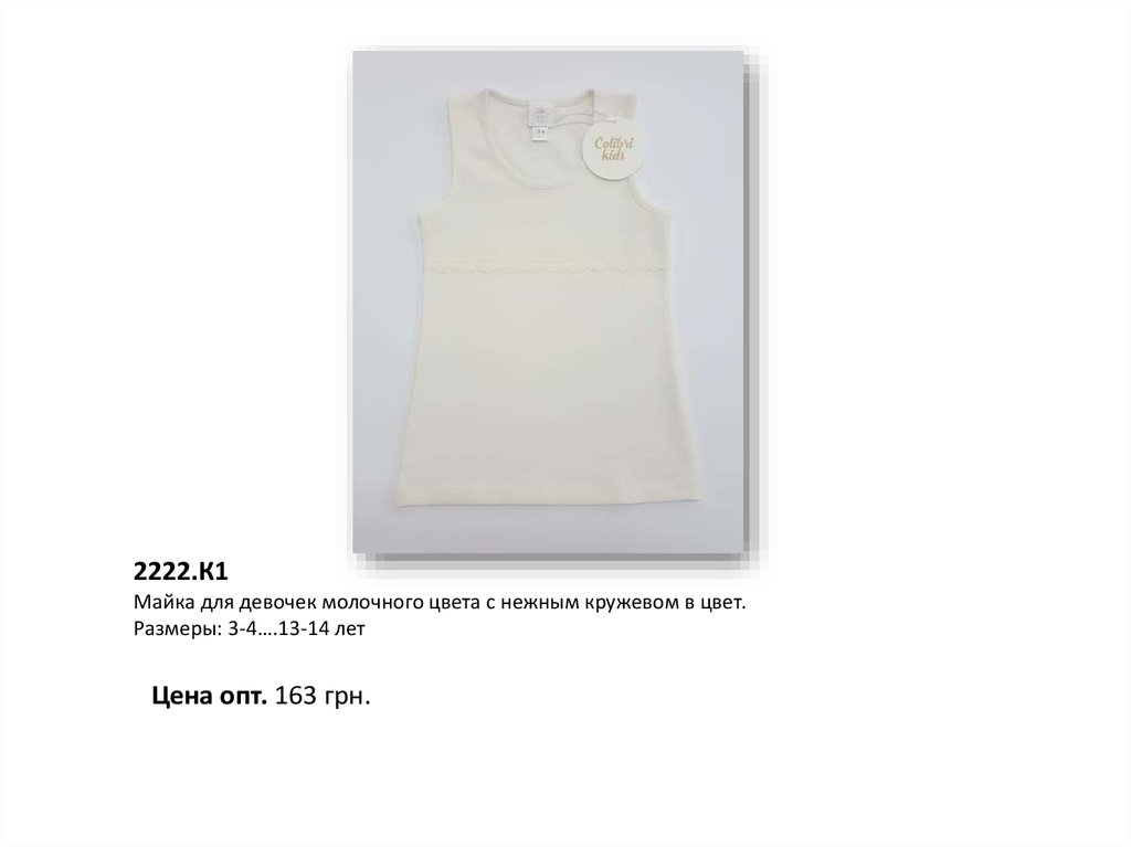 Топ с резинкой молочного цвета. полотно – Италия. Размеры: 78…13-14 лет. Цены: ОПТ бутик – 216грн6. 2402G