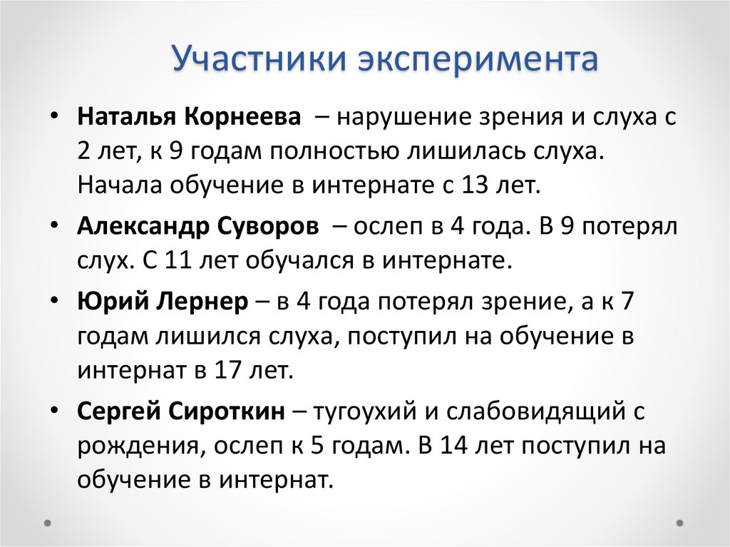 воспитанию слепоглухих детей, его воспитанница Ольга