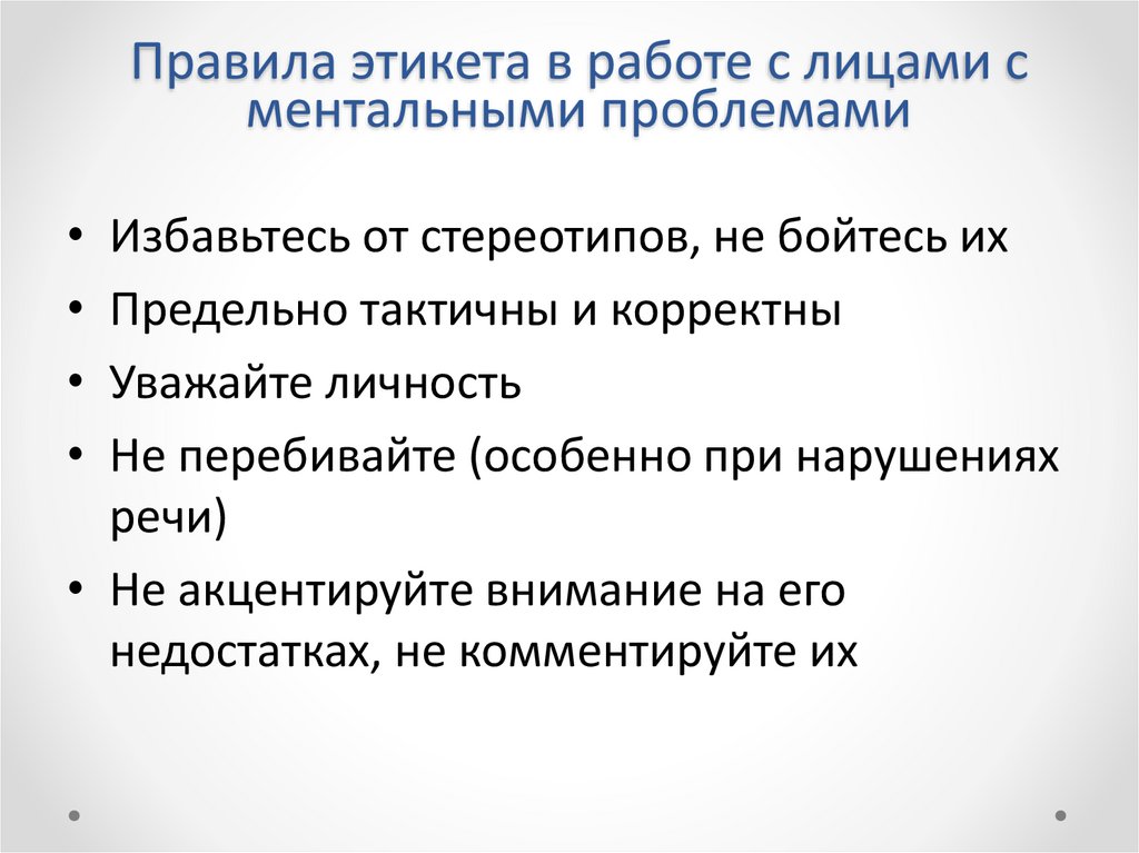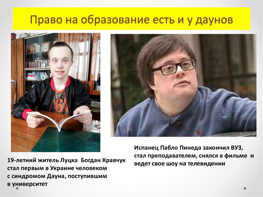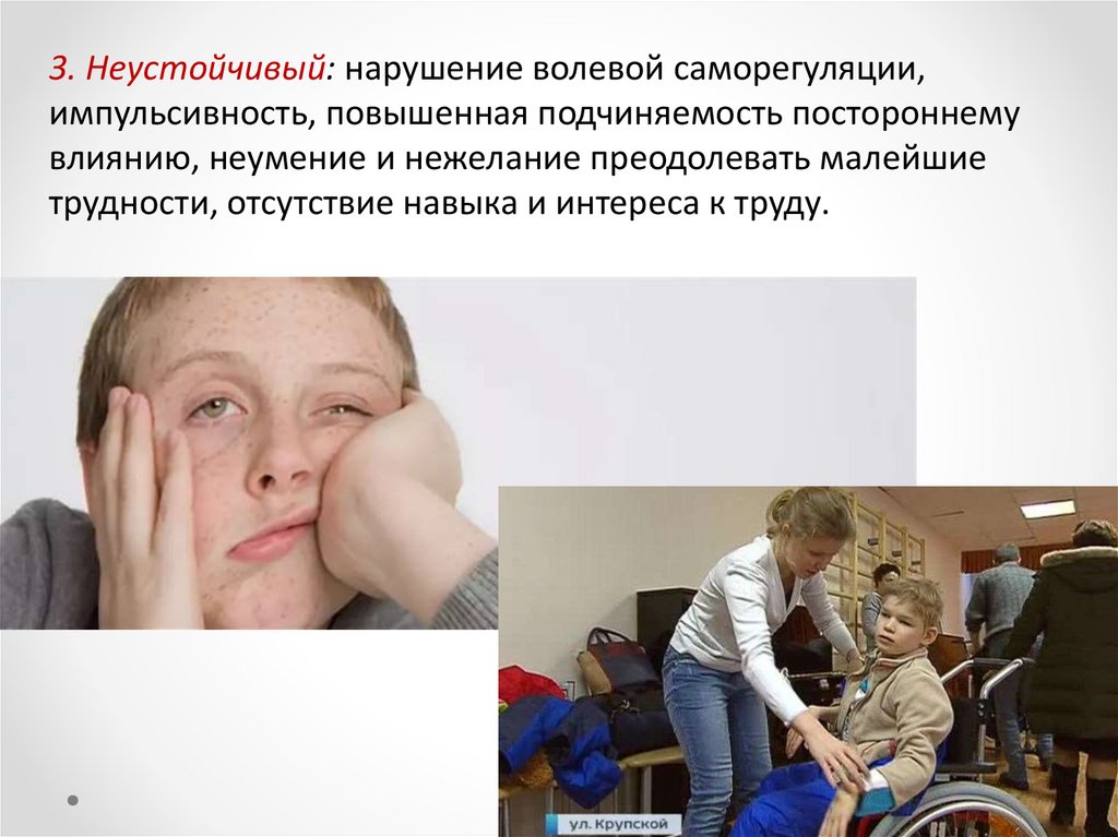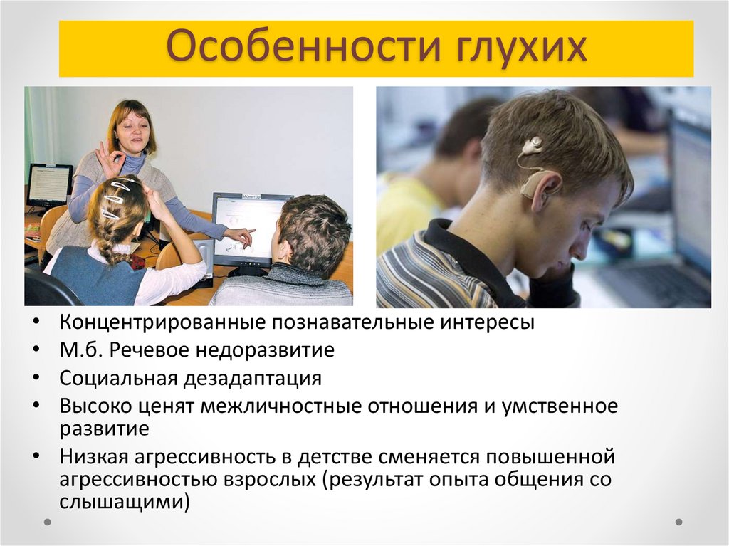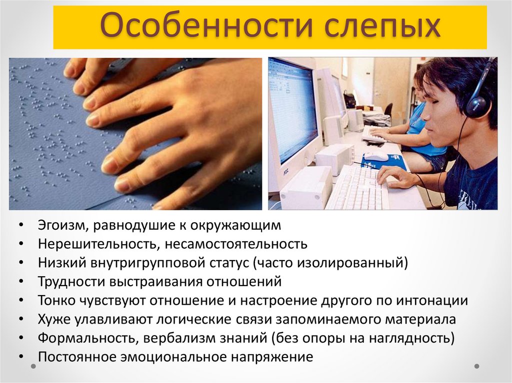 детей: с нарушениями слуха, зрения, умственно отсталых. От осознания