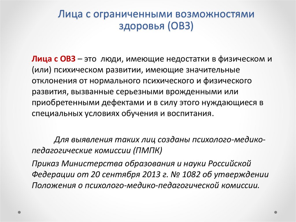 Лица с ОВЗ – это люди, имеющие недостатки в физическом и