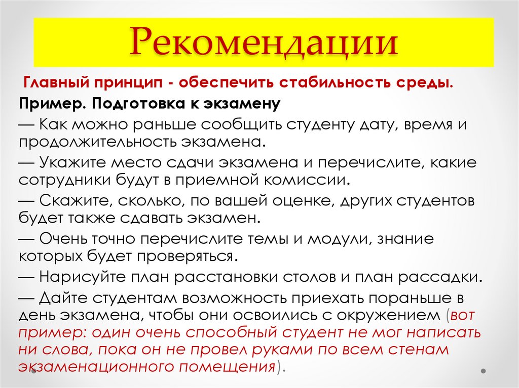 РекомендацииГлавный принцип - обеспечить стабильность среды.