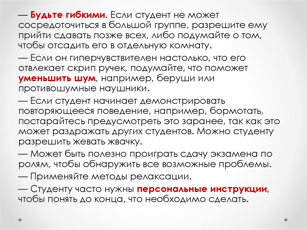 — Будьте гибкими. Если студент не можетсосредоточиться в большой группе, разрешите ему