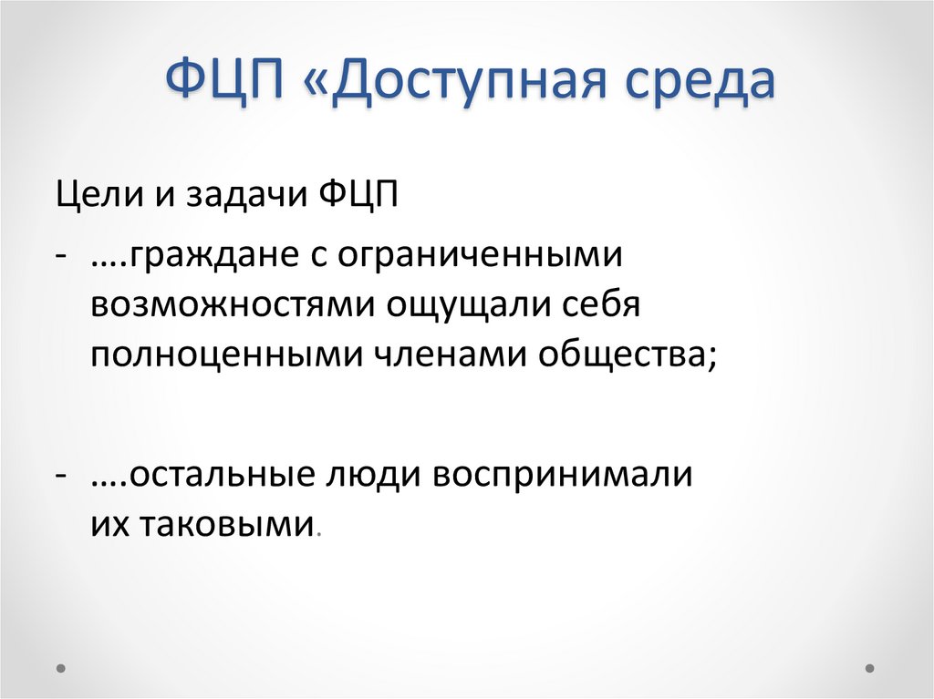 ФЦП «Доступная средаЦели и задачи ФЦП