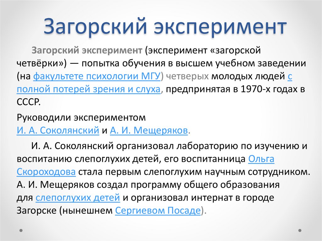 Загорский экспериментЗагорский эксперимент (эксперимент «загорской