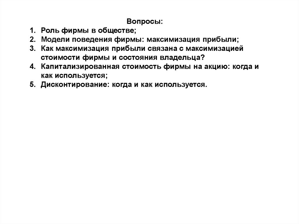 Стоимость фирмы в длительном интервалеопределяется потоком ее будущих прибылей