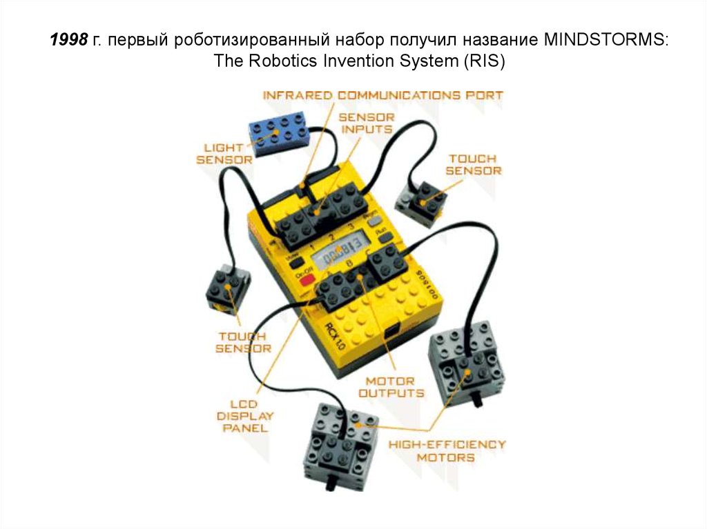 1998 г. первый роботизированный набор получил название MINDSTORMS:The Robotics Invention System (RIS)