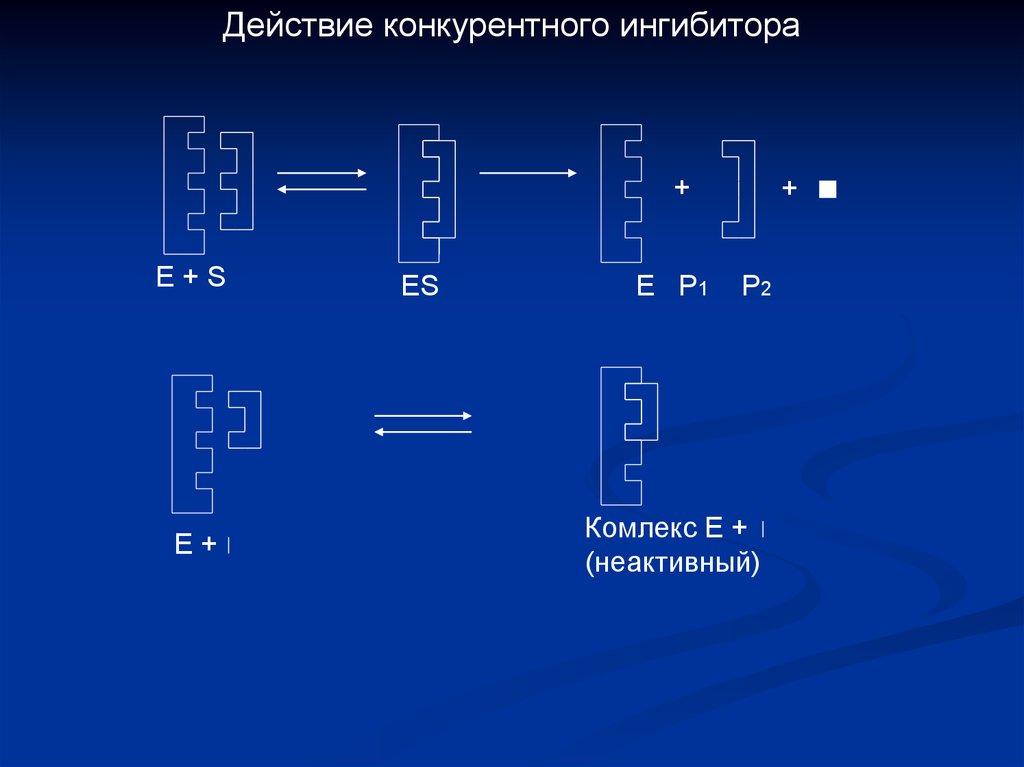 График зависимости скорости ферментативной реакции отконцентрации субстрата в присутствии конкурентного ингибитора.