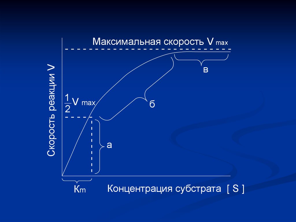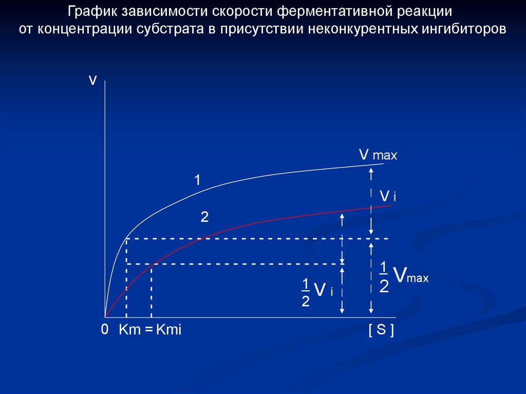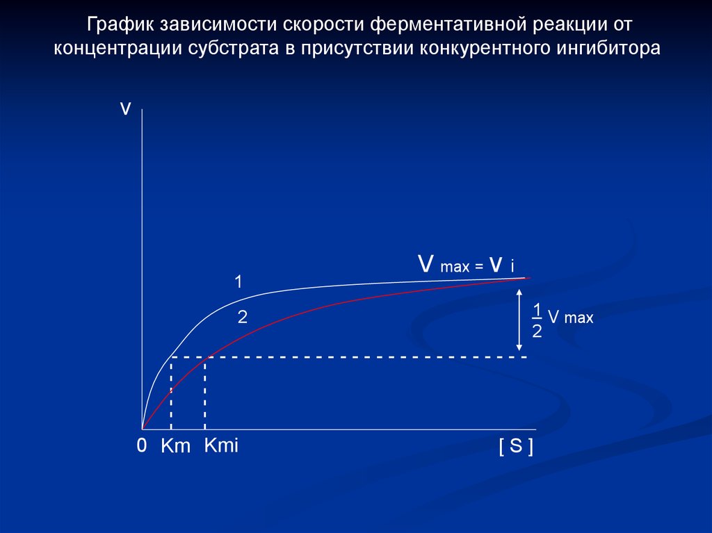 График зависимости скорости ферментативной реакции отконцентрации субстрата в присутствии конкурентного ингибитора