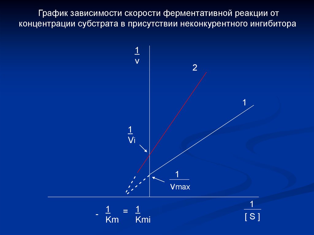 График зависимости скорости ферментативной реакцииот концентрации субстрата в присутствии неконкурентных ингибиторов