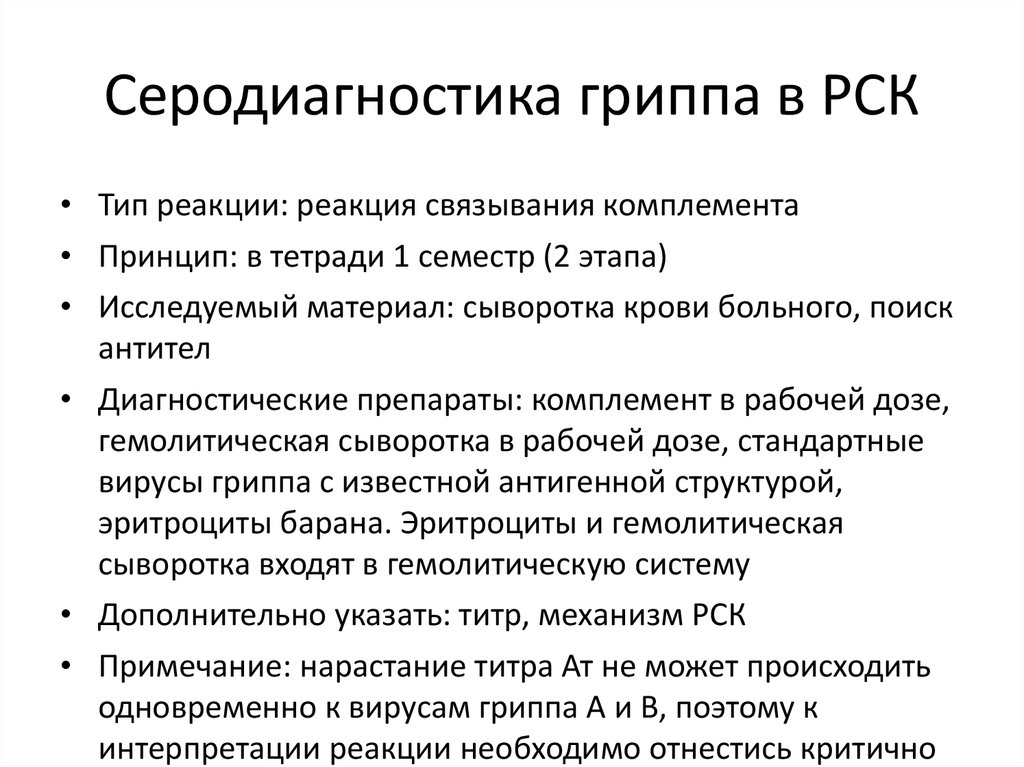 Серодиагностика гриппа в РСК• Тип реакции: реакция связывания комплемента