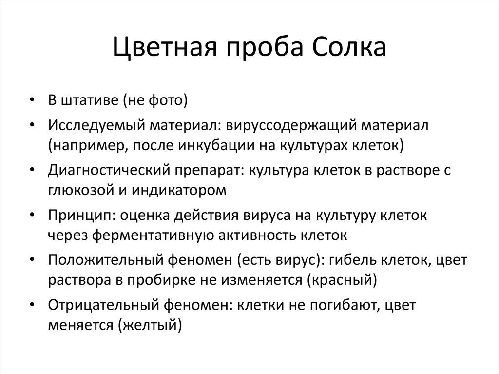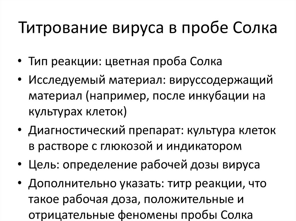 Титрование вируса в пробе Солка• Тип реакции: цветная проба Солка