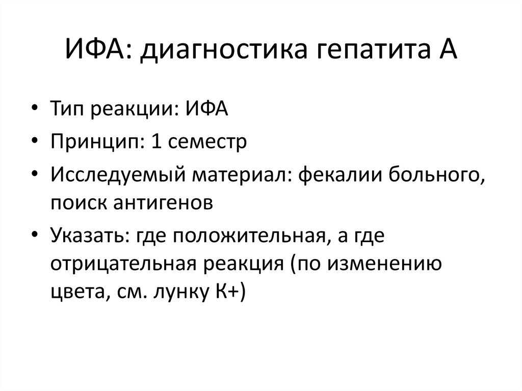 ИФА: диагностика гепатита А• Тип реакции: ИФА