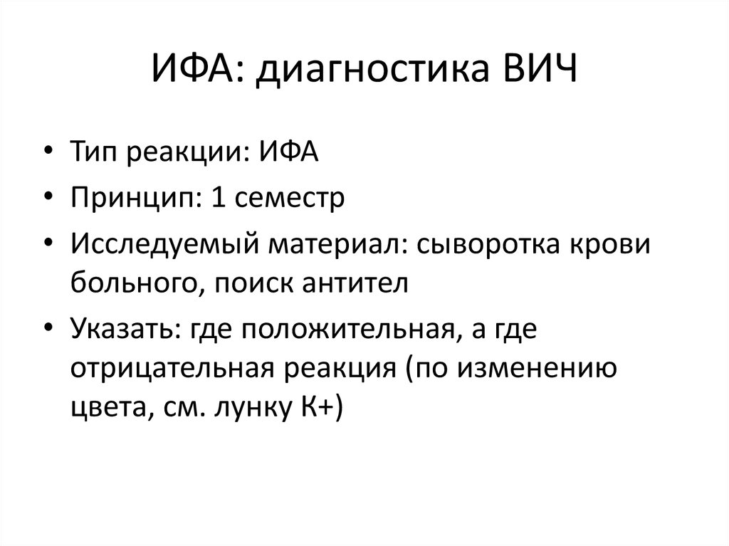 ИФА: диагностика ВИЧ• Тип реакции: ИФА