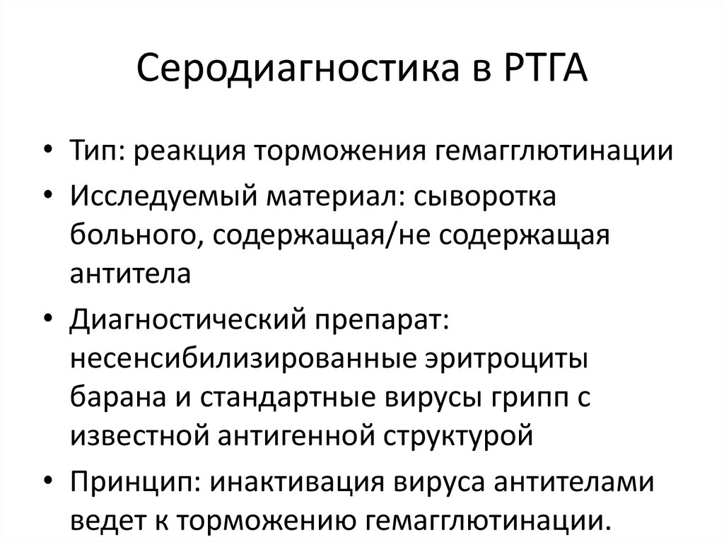 Серодиагностика в РТГА• Тип: реакция торможения гемагглютинации