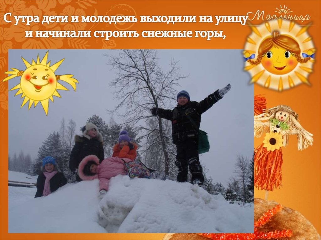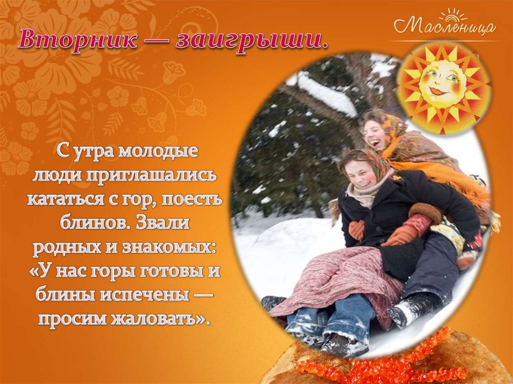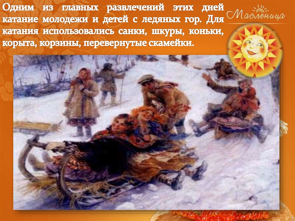 25. Яркие салазки с горочек скользят. Накатавшись вволю, Все блинов хотят!