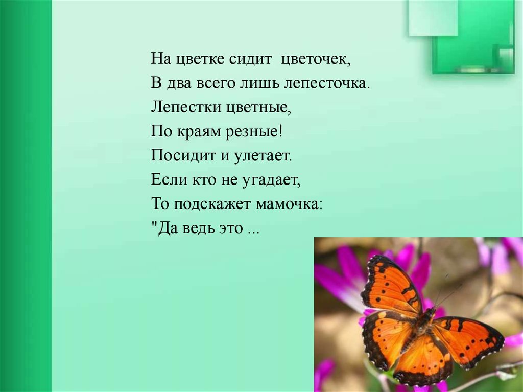 На цветке сидит цветочек,В два всего лишь лепесточка.