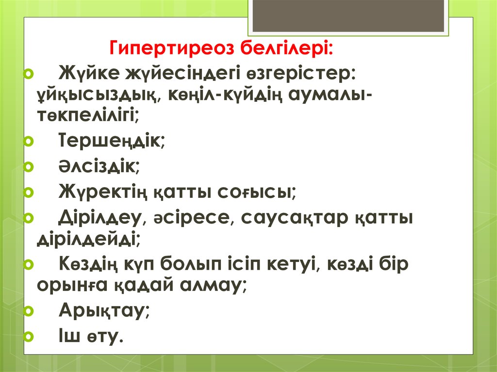 Гипертиреоз – қалқанша безініңгармонын әдеттегіге қарағанда