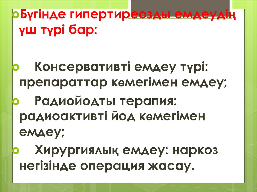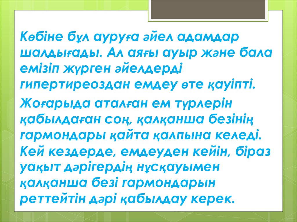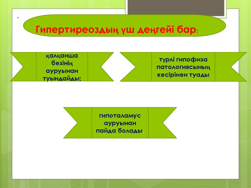 3. Гипертиреоз – қалқанша безінің гармонын әдеттегіге қарағанда көп бөле бастауы. Басқаша айтқанда, гипертиреоз гипотиреозға қарама-қарсы а