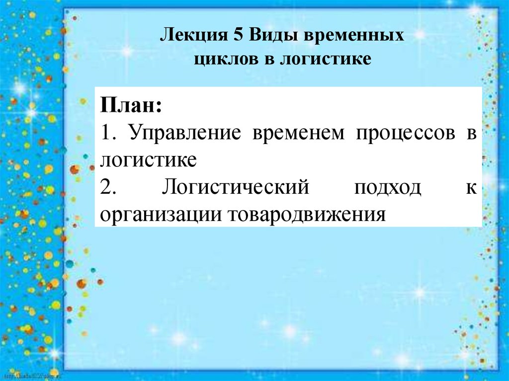 Лекция 5 Виды временныхциклов в логистике