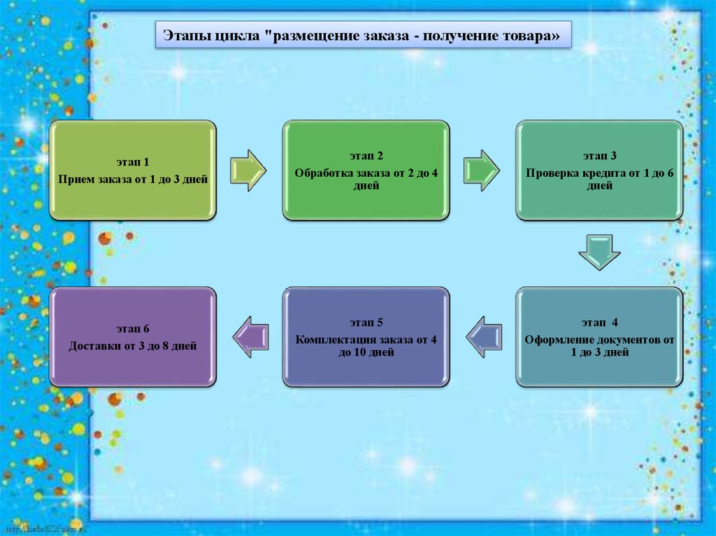 Цикл "получение заказа - поступление оплаты".- о время исполнения на каждом этапе цикла
