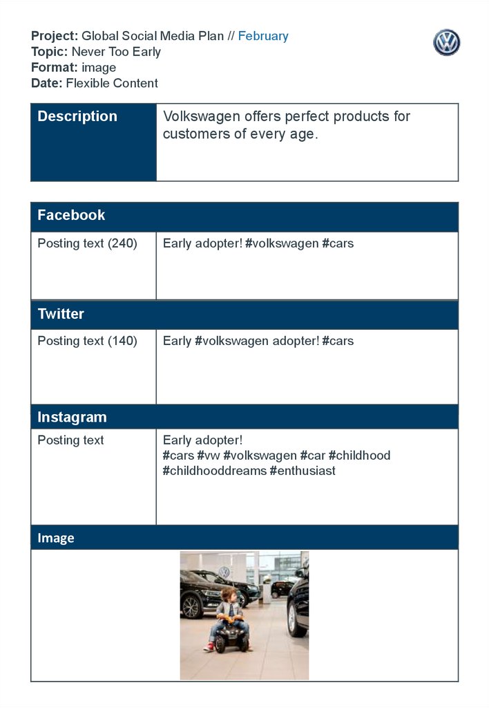 1. Project: Global Social Media Plan // February Topic: Never Too Early Format: image Date: Flexible Content