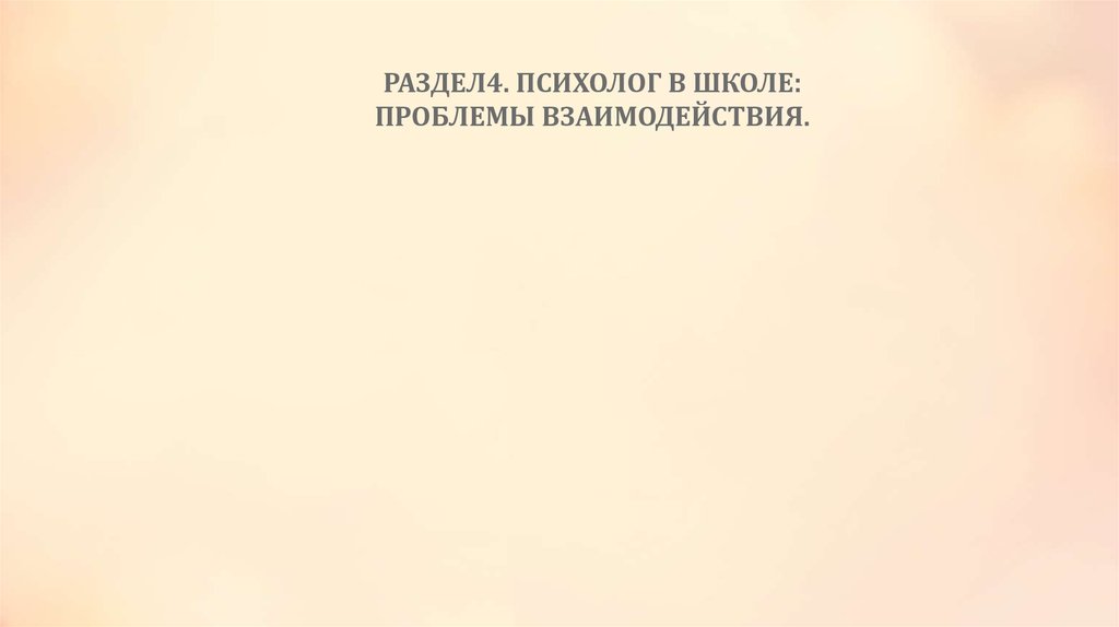РАЗДЕЛ4. ПСИХОЛОГ В ШКОЛЕ:ПРОБЛЕМЫ ВЗАИМОДЕЙСТВИЯ.