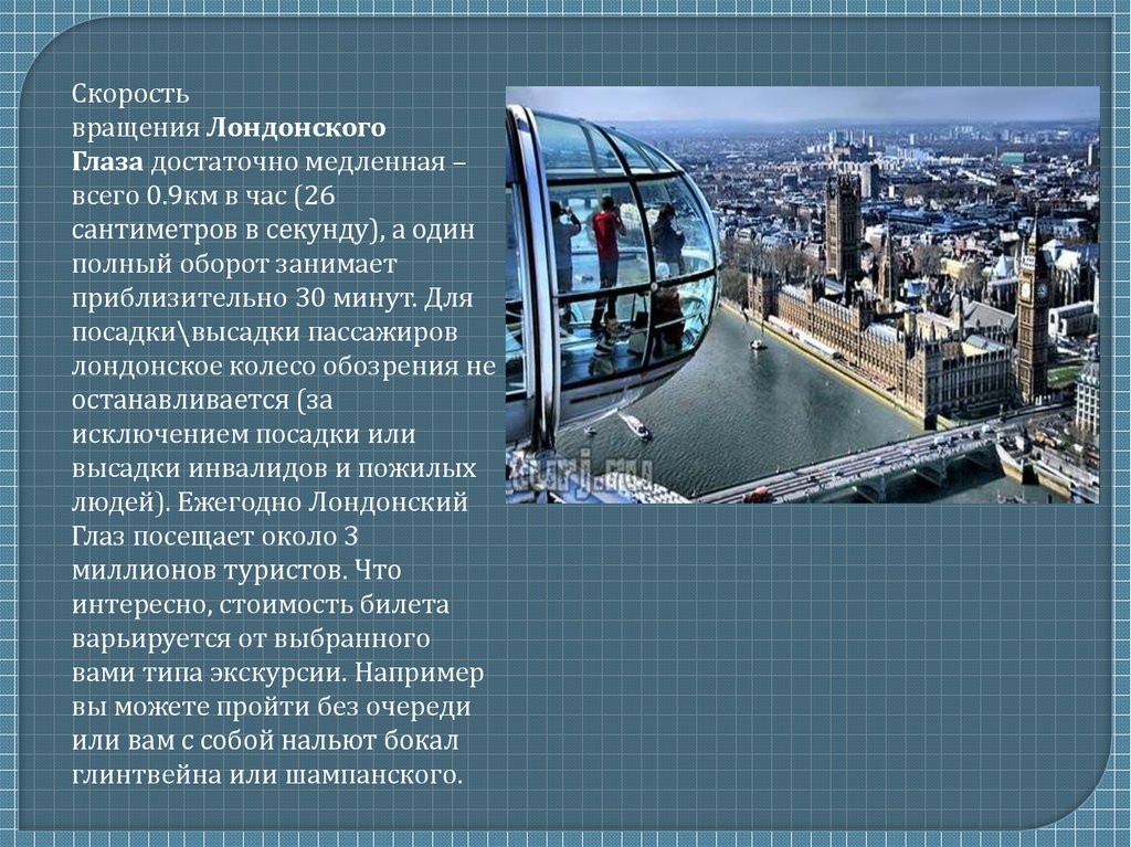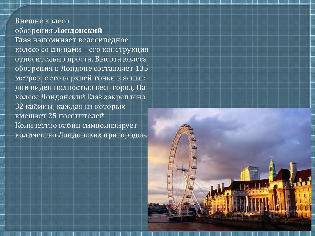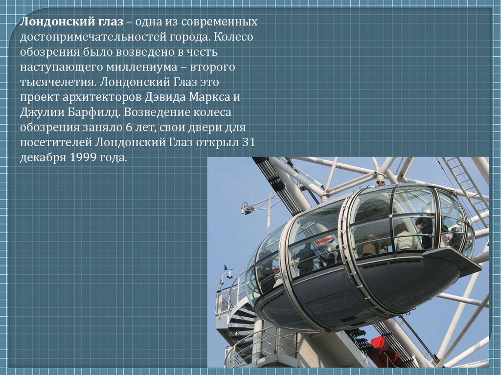 Лондонский глаз – одна из современныхдостопримечательностей города. Колесо