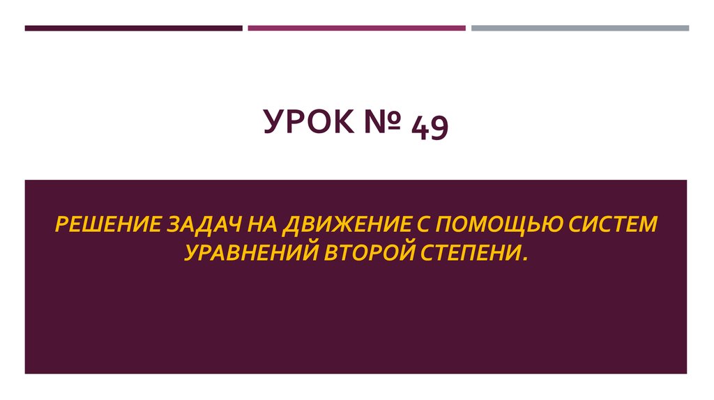 УРОК № 49РЕШЕНИЕ ЗАДАЧ НА ДВИЖЕНИЕ С ПОМОЩЬЮ СИСТЕМ