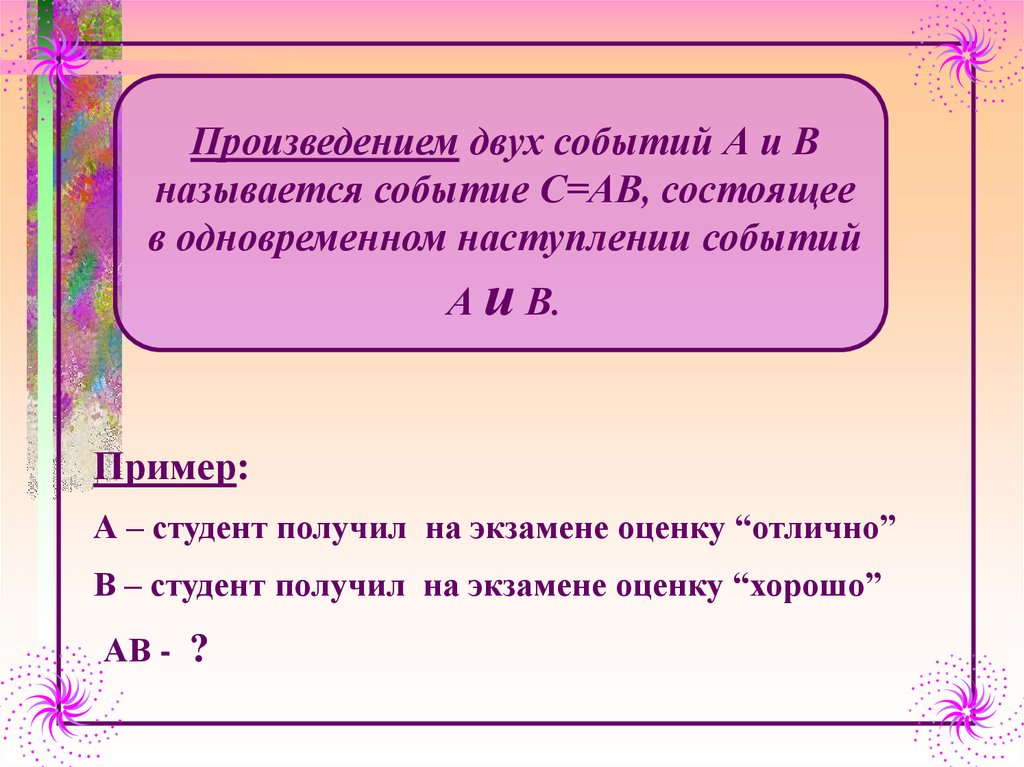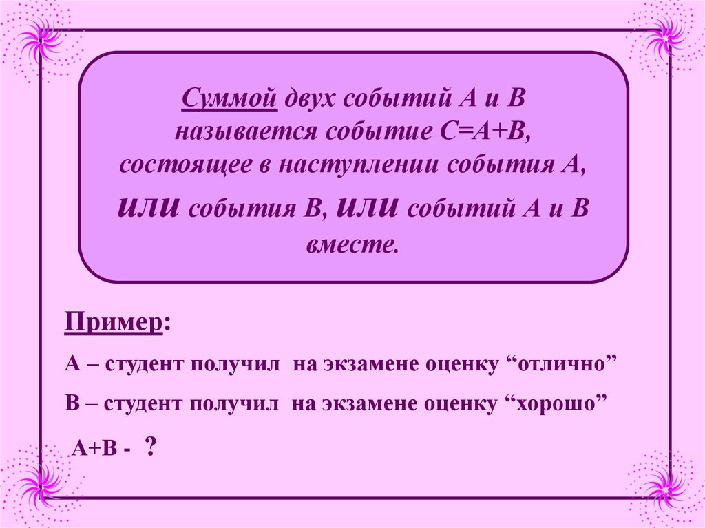Сумма событий А и ВПроизведение
