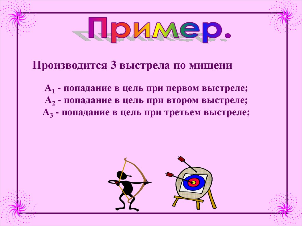Пример: А – при двух выстрелах в мишень