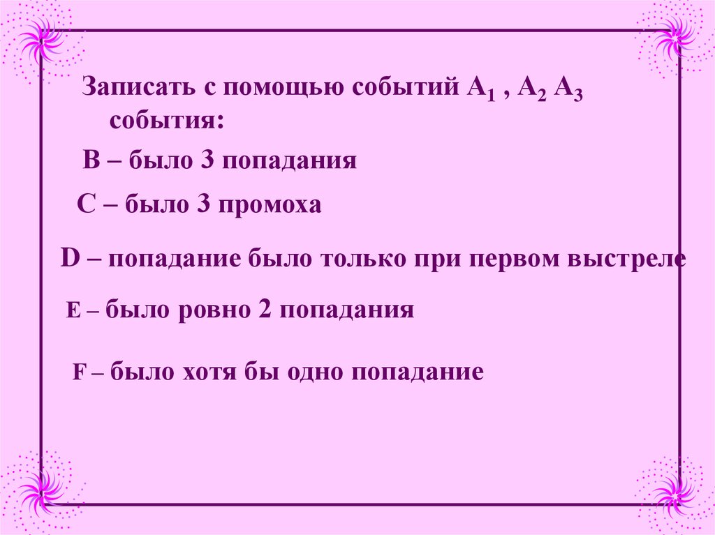 Записать с помощью событий А1 , А2 А3события: