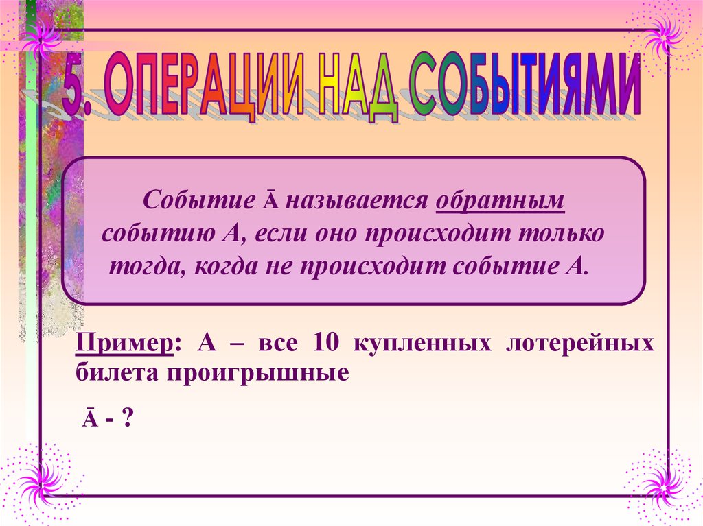 Теория вероятности.Операции над событиями
