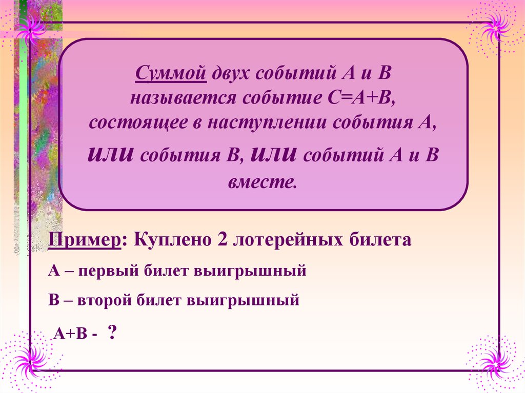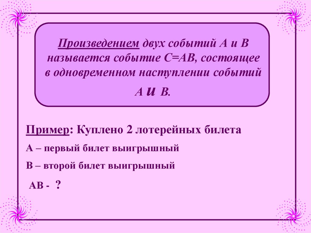 Пример: А – все 10 купленных лотерейных