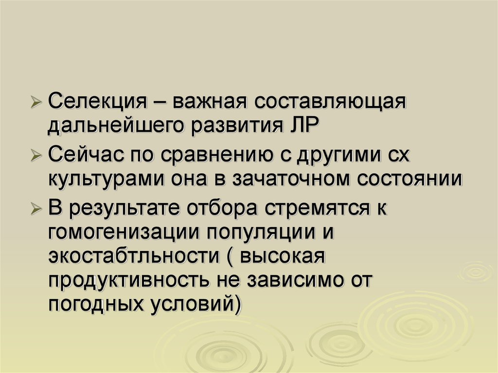 Большое видовое разнообразиеОчень разнообразные цели отбора