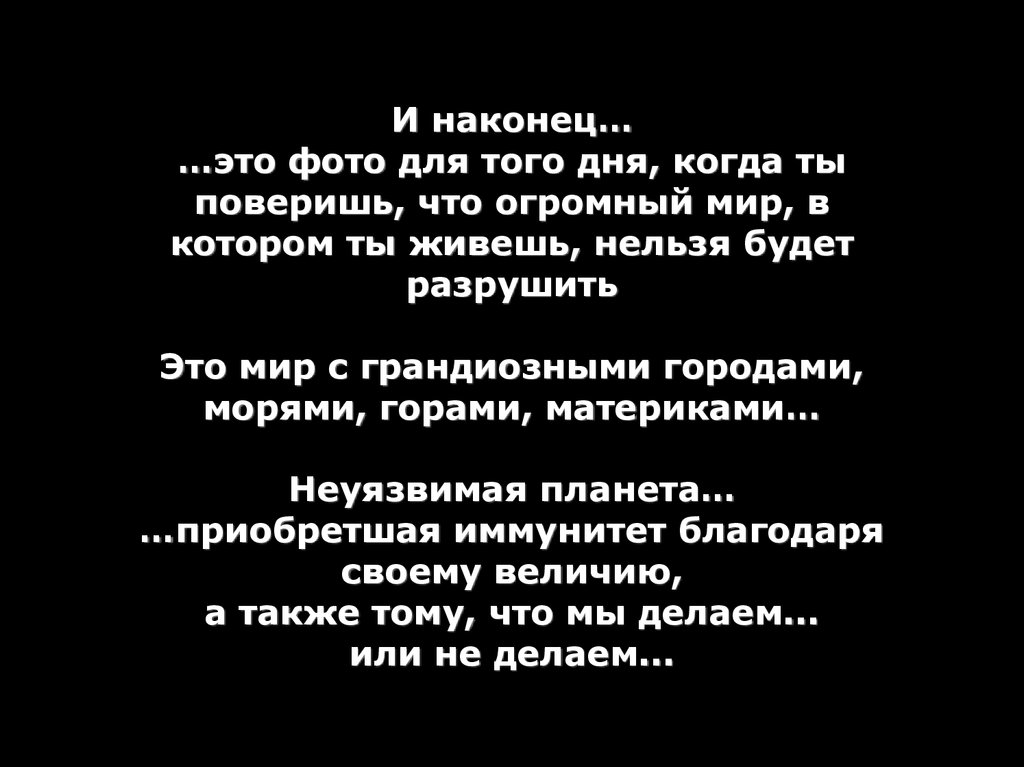 Но этот снимок тоже для того дня,когда ты, человеческое существо,