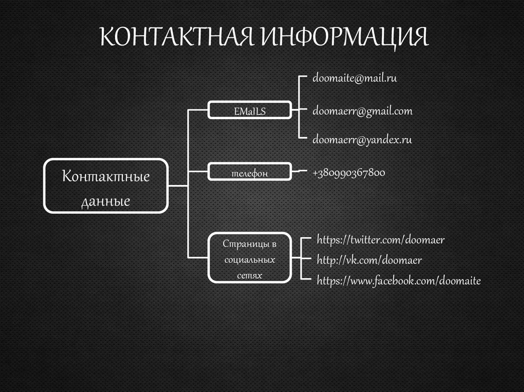 КОНТАКТНАЯ ИНФОРМАЦИЯdoomaite@mail.ru