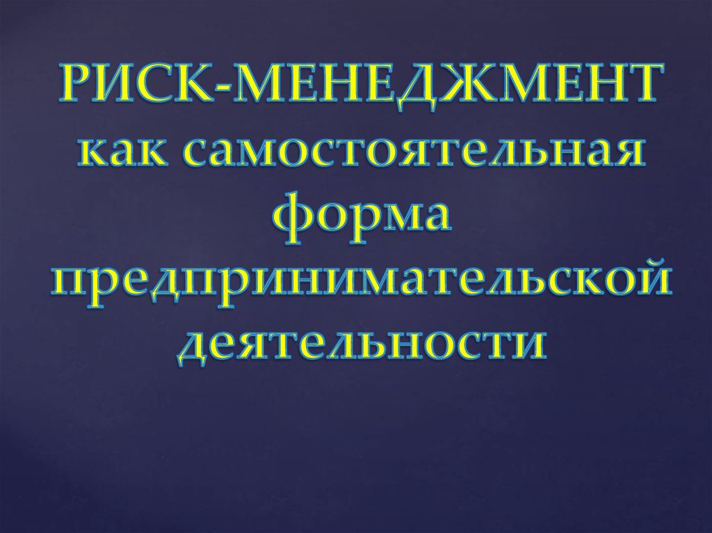 Рис. 1 Схема риск-менеджмента как формыпредпринимательства