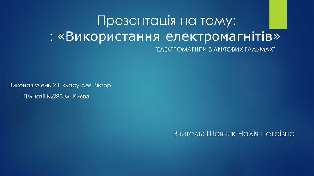 1. Презентацiя на тему: : «Використання електромагнiтiв»
