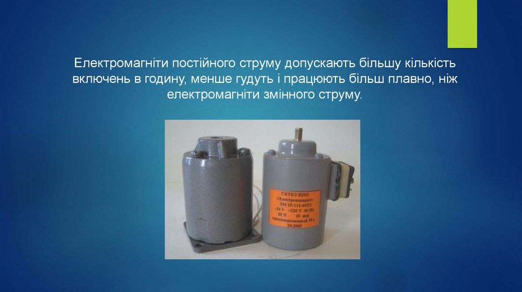 Електромагніти постійного струму допускають більшу кількістьвключень в годину, менше гудуть і працюють більш плавно, ніж