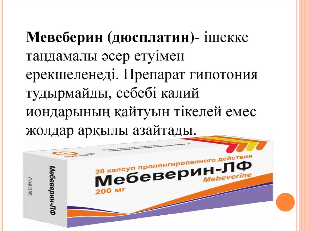 Мевеберин (дюсплатин)- ішеккетаңдамалы әсер етуімен