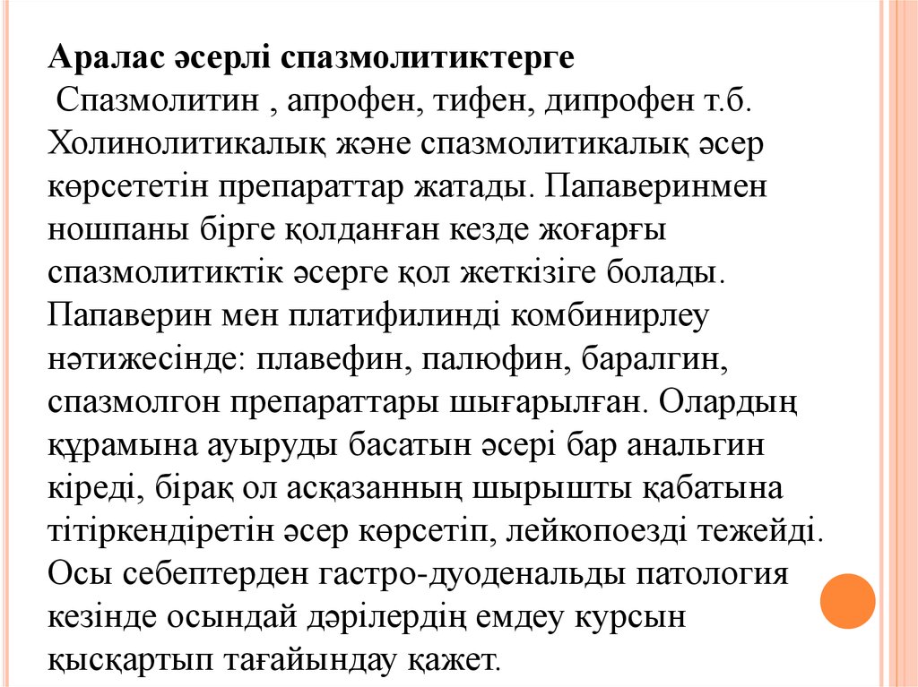 Аралас әсерлі спазмолитиктергеСпазмолитин , апрофен, тифен, дипрофен т.б.