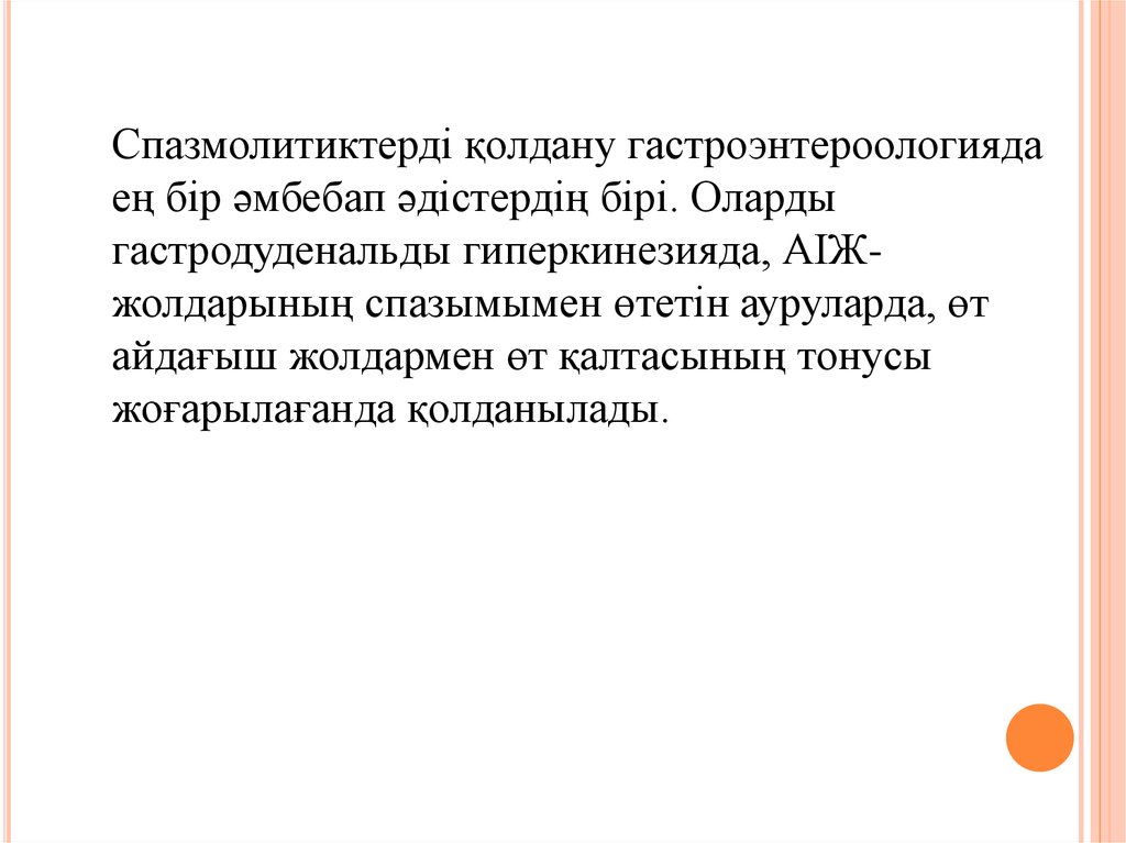 Спазмолитиктер. Олардың әсер етуі. Қолдануы.