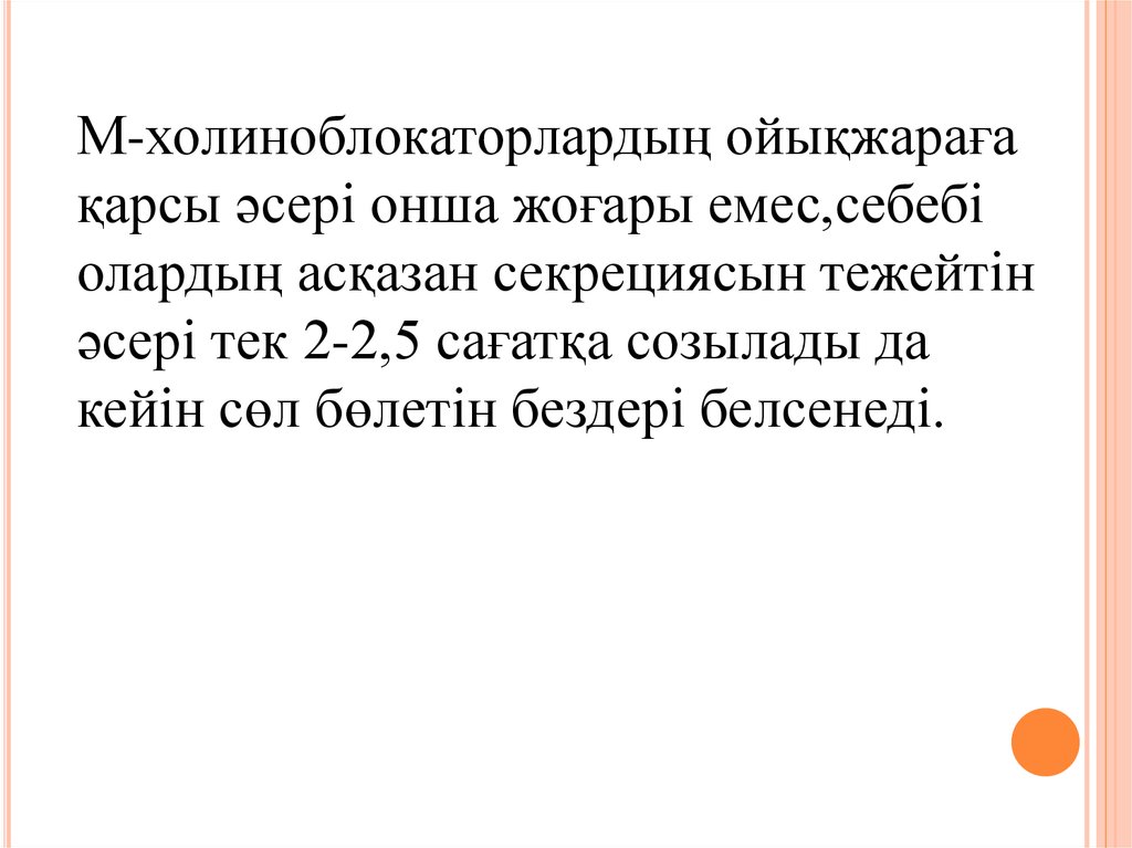 М-холиноблокаторлардың ойықжарағақарсы әсері онша жоғары емес,себебі