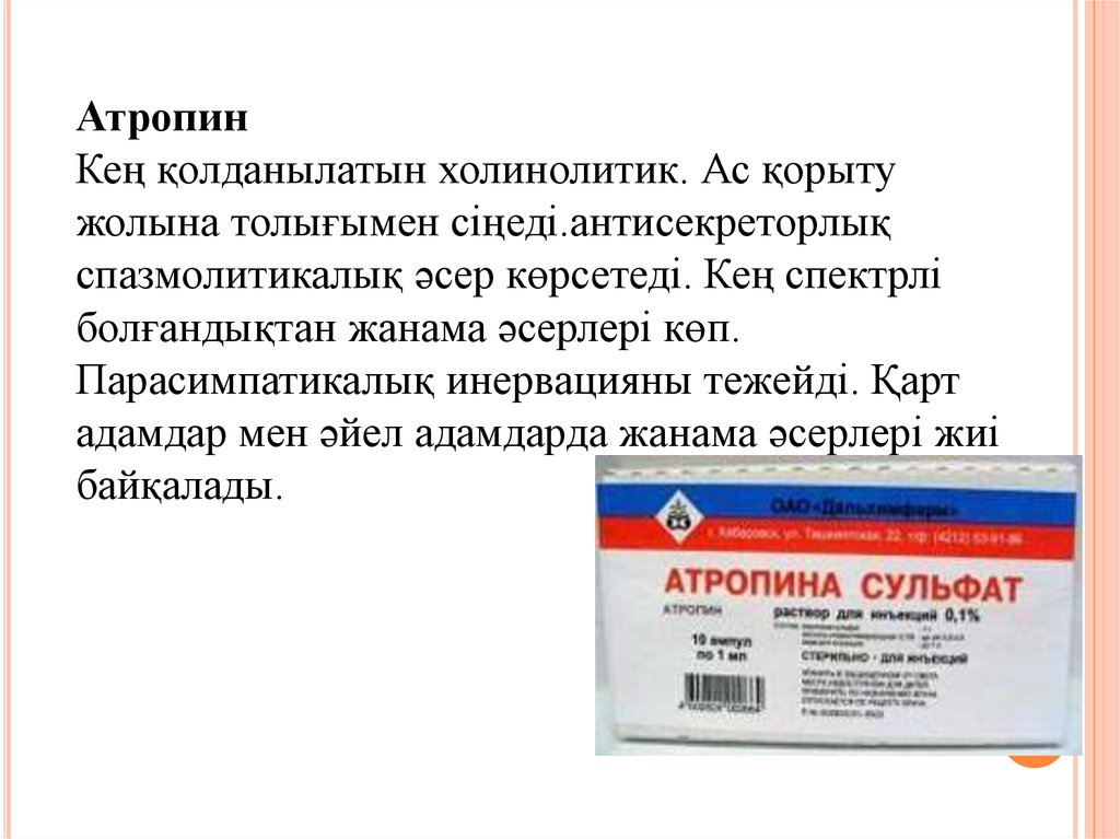 АтропинКең қолданылатын холинолитик. Ас қорыту