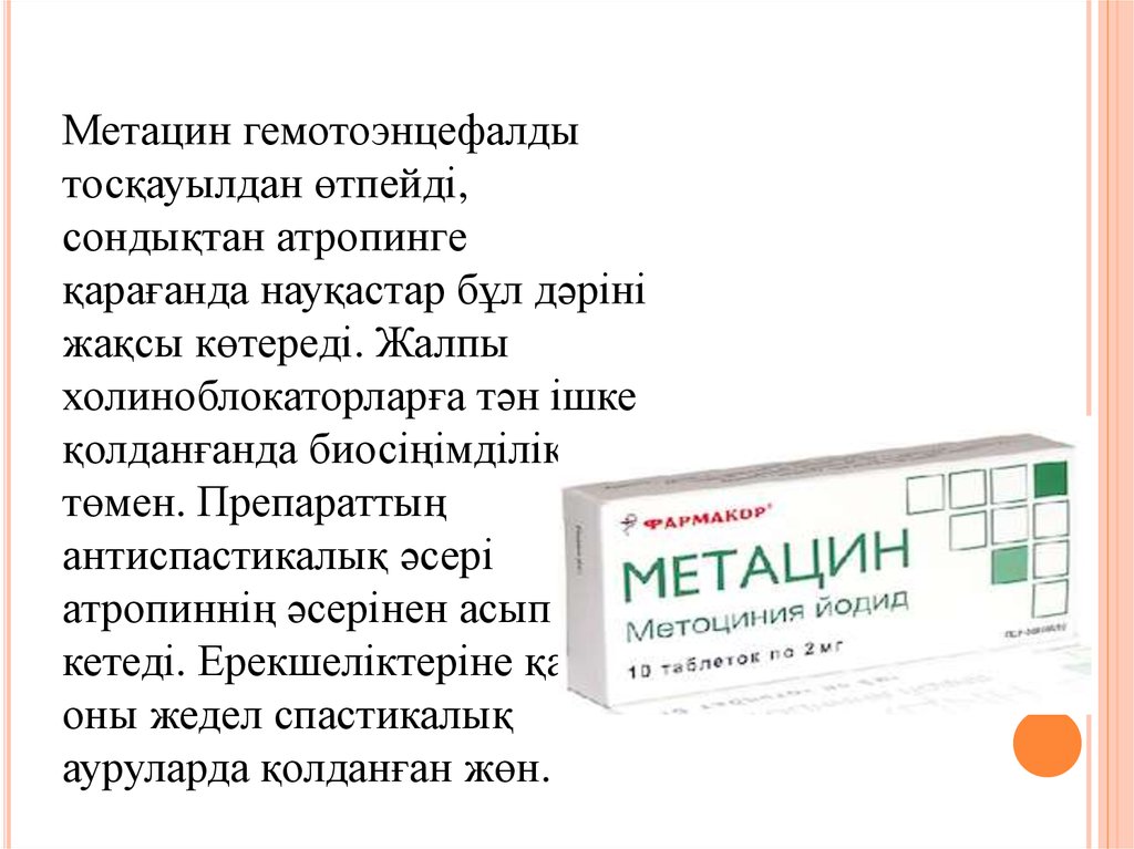Метацин гемотоэнцефалдытосқауылдан өтпейді,